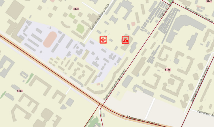 По данным Генплана, в этой локации к 2030 году запланировано строительство поликлиники, рассчитанной на посещение не менее чем 600 взрослых и 420 детей в смену. Объект должен быть возведен на пр. Маршала Блюхера, 12 (участок 77). Кроме того, неподалеку, на Лабораторном пр. (участок 77) появится подстанция скорой медицинской помощи.
