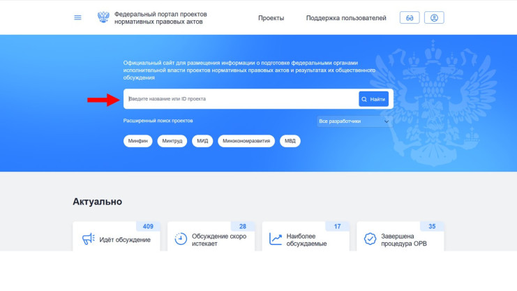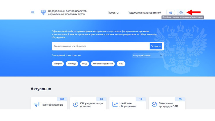 – Для того, чтобы оставить предложения или замечания на Федеральном портале проектов нормативных правовых актов необходимо войти в профиль через Единый портал государственных услуг («Госуслуги») и авторизоваться.