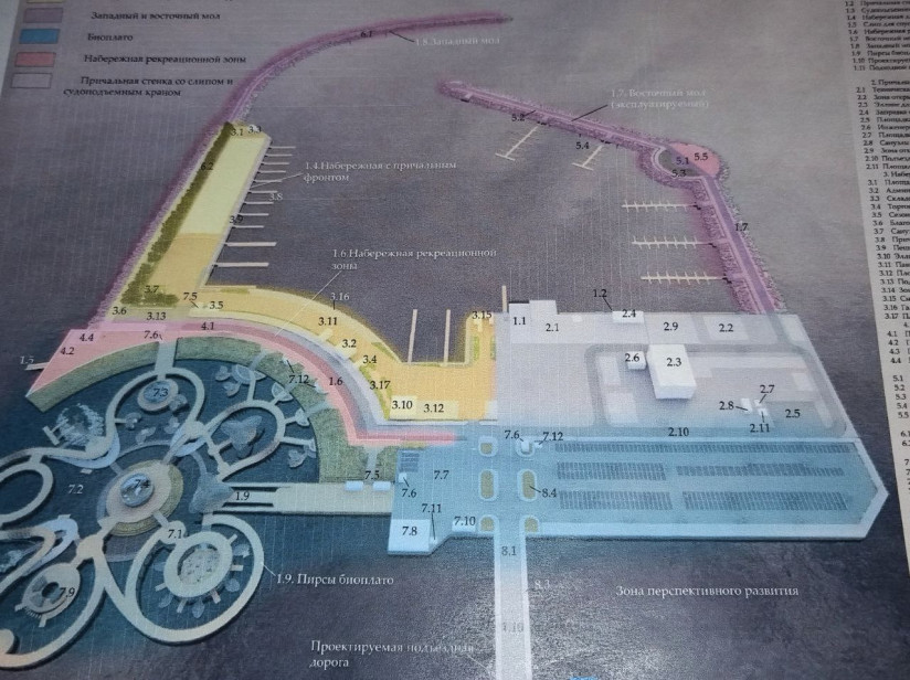 Концепт яхт-клуба показывал в июле 2025 года президент петербургского парусного союза Владимир Любомиров — в рамках доклада на конференции по развитию парусного спорта. Судя по продемонстрированным материалам (на рендере), тут задуманы эллинги, в том числе для зимнего хранения судов, административные здания, прогулочная набережная и некое «биоплато».