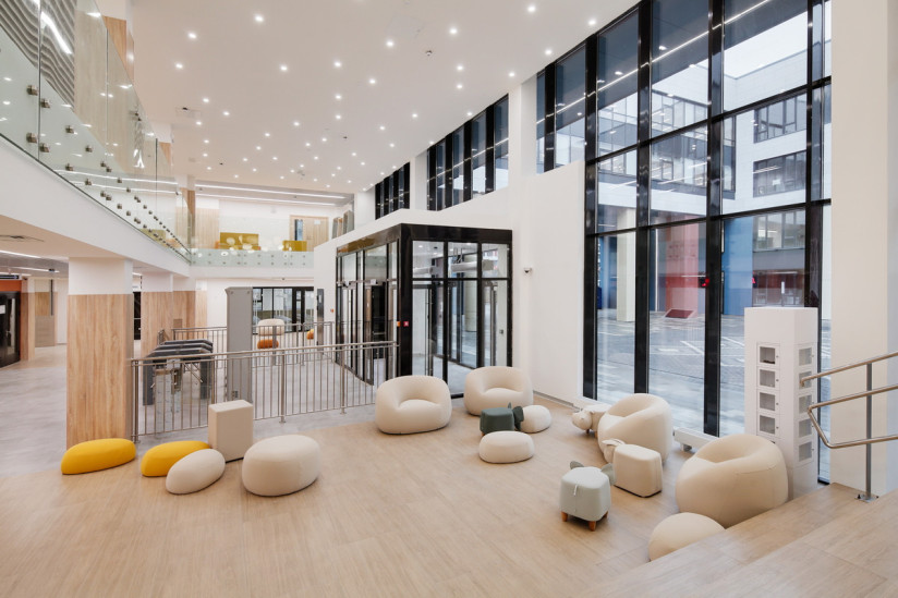На проспекте Авиаконструкторов открылся IT-лицей от девелопера Arsenal. Еще в процессе его проектирования застройщик привлек к разработке концепции специалистов университета ИТМО. Тут учеников ждут лаборатории физики и химии, оснащенные на вузовском уровне, робототехнические мастерские и инженерные классы. Здание разновысотное, от трех до пяти этажей, общей площадью 24,7 тыс. кв. м. Оно рассчитано на 1100 детей. Они будут учиться работать с нейросетями, углубленно изучать информатику и математику, робототехнику, 3D-моделирование, виртуальную реальность, программирование, а также управление беспилотниками. «Мы уделили внимание дизайну, чтобы детям было комфортно», – поясняет директор компании Arsenal Арсений Лаптев.