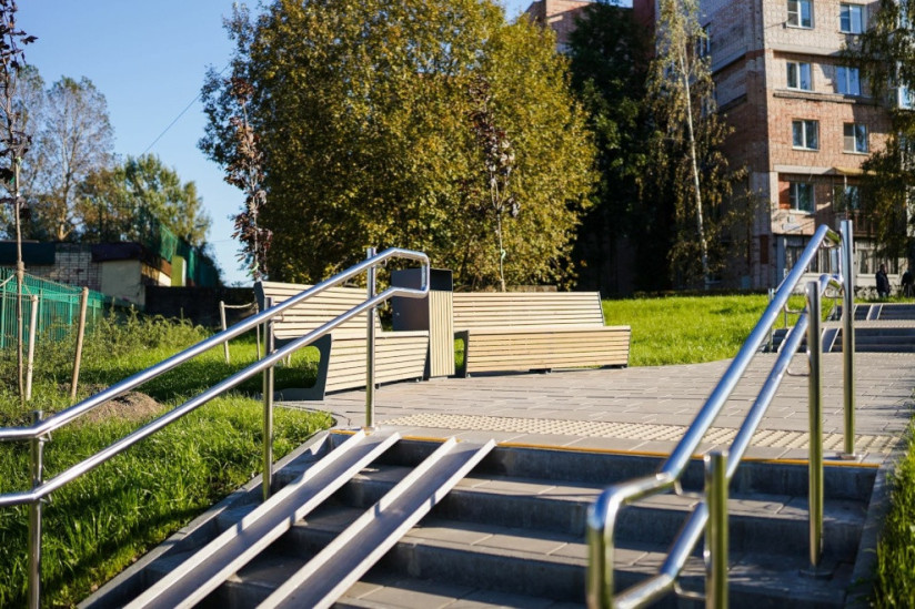 В Мартышкино на спуске на улице Жоры Антоненко смонтировали лестницы с поручнями, тактильные плиты и дорожку, по которой могут спуститься люди с колясками и маломобильные горожане. В рамках благоустройства также высадили 295 кустарников и пять деревьев, устроили альпийскую горку. Тротуар вымостили плиткой, а вдоль проезжей части установили дорожное ограждение.
