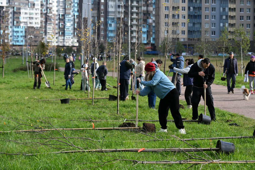 В Приморском районе в парке у реки Каменки посадили 20 яблонь и 50 деревьев боярышника. Пока взрослые занимались озеленением, дети приняли участие в познавательных экологических играх по станциям. Ребята изучали цепочки жизни в природе, разгадывали экошифры и учились правильно сортировать мусор.