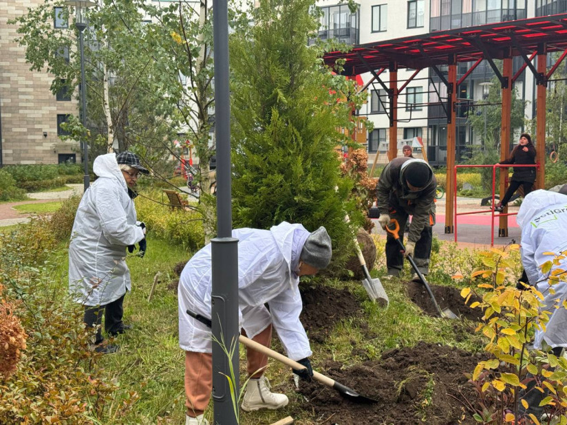 Озеленение территории состоялось и в Красносельском районе в жилых кварталах «Солнечный город. Резиденции». Вместе с комьюнити-центром и волонтерами местные жители убрались во дворах и высадили липы, туи и гортензии. По завершении мероприятия всех ждали угощения и горячие напитки в комьюнити-центре.