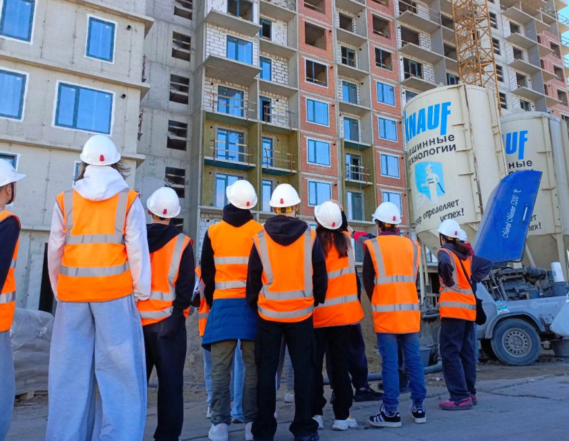 Профориентационное знакомство началось у штаба стройплощадки в Невском районе, там рассказали об этапах возведения домов и показали, как выглядит рабочая документация. Обсудили также, какие строительные профессии самые востребованные и высокооплачиваемые.