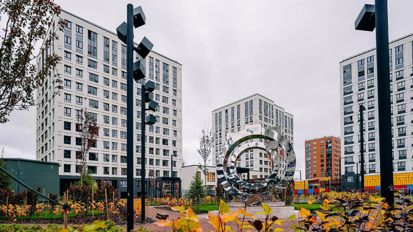 На территории жилого комплекса «Тайм Сквер», построенного холдингом «РСТИ» на Планерной улице в Приморском районе Санкт-Петербурга, установлен арт-объект «Машина времени».