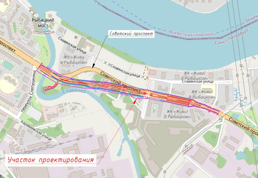 Сейчас на Советском проспекте всего две полосы, что создает продолжительные "пробки" для транспорта и вызывает большие жалобы со стороны жителей Рыбацкого и Усть-Славянки.