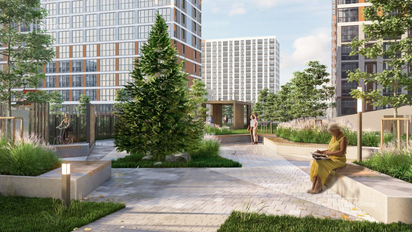 Особенность «Города Звезд» — продуманная концепция благоустройства: пятикилометровый променад «Аллея звезд» соединит дома и выйдет к Невскому лесопарку. На территории комплекса обустроят четыре площади: культурная площадь с амфитеатром, спортивная площадь для активных видов спорта, главная площадь с фонтаном и торговая площадь для ярмарок.