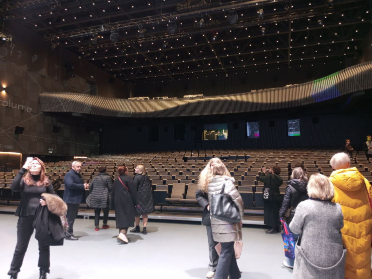 На двух первых этажах комплекса есть репетиционные, гримерные, служебные и технические помещения.