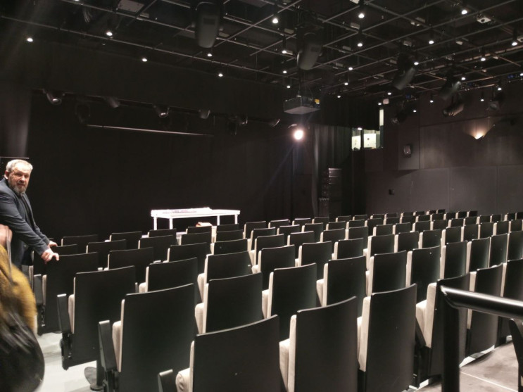 На подземном уровне помимо гардеробной расположен малый зал на 160 мест с концертным оборудованием. Имеется еще одно музейное пространство – медиамеханики, на площадке которого сейчас проходит временная выставка, посвященная эпохи Перестройки.