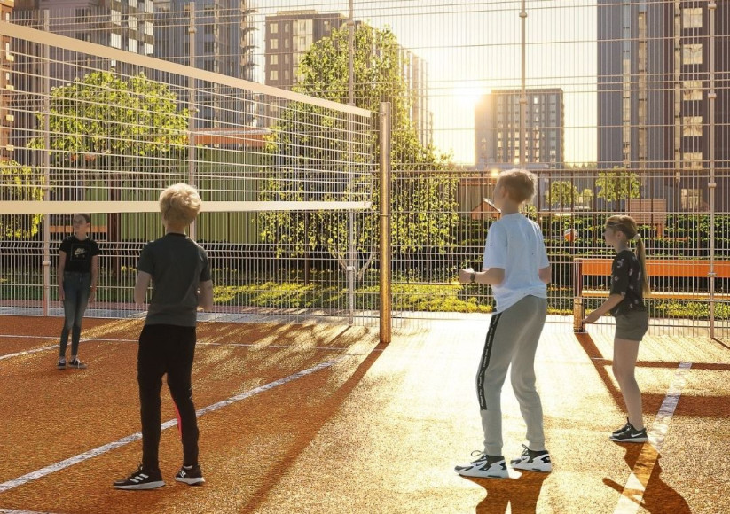 Помимо воркаут-площадок в дворах, комплекс располагает масштабным спортивным кластером вдоль Большого бульвара. Здесь размещена многофункциональная спортивная площадка, где любители тенниса и волейбола найдут идеальные условия для хорошей игры. Турниры соседей, дружеские матчи и тренировки станут постоянной частью жизни «Тишина».