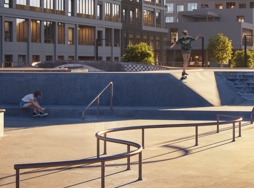Для мальчишек и девчонок и любителей активного отдыха предусмотрена современная скейт-площадка — полноценная арена для фристайла и трюков. Она органично вписывается в спортивный кластер и создает отдельное пространство для экстремальных дисциплин.