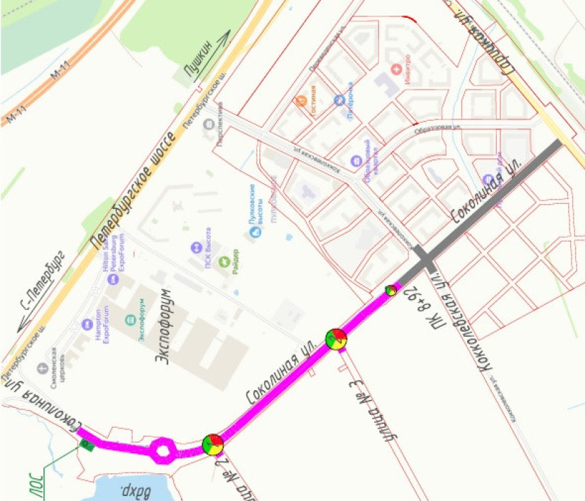 Смольный ищет подрядчика для значительного продления Соколиной улицы: от «Экспофорума» до Кокколевской улицы в Шушарах.