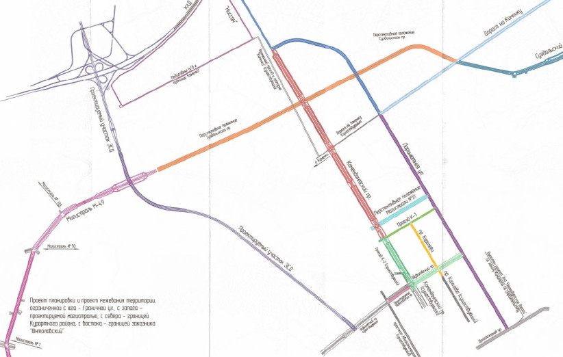 Планировочные решения магистрали М-49 разработаны в увязке с проектами планировки и проектами межевания жилой зоны «Юнтолово» и производственной зоны «Конная Лахта».