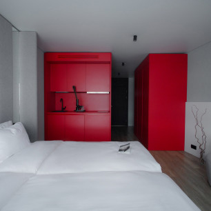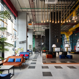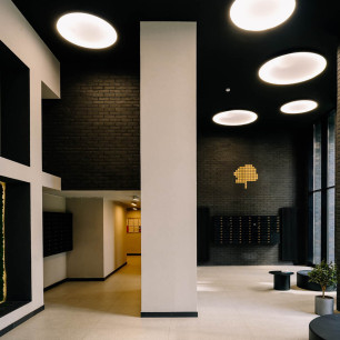 Компактность номеров компенсируется большим количеством общественных пространств. Ключевое преимущество проекта — развитая инфраструктура, ориентированная именно на молодых пользователей: большое дизайнерское лобби, коворкинг с отдельными переговорными, пространства для индивидуальной работы, конференц-зал, спортивная студия для резидентов, лаундж-зона для неформальных встреч и легендарный петербургский «Бар 812».