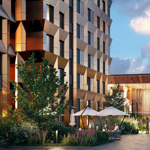 В проекте продуманы дополнительные опции, важные для молодых резидентов: помещения для хранения велосипедов во дворе, удобные сквозные проходы через парадные, позволяющие быстро выходить на улицу или во двор, а также просторная пергола с большим столом — формат, который подходит для настольных игр, встреч или небольших мероприятий. Комьюнити-центр станет местом лекций, мастер-классов, кинопоказов и мероприятий, формируя среду для общения и обучения.