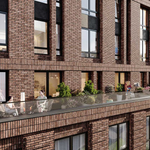 Не секрет, что молодые покупатели обращают большое внимание на архитектуру — им важно, чтобы дом выглядел стильно и современно. Отделка фасадов ЖК «Тайм Сквер» выполнена из клинкерной плитки и штукатурки. Сочетание графитового и светлого оттенков, а также асимметричное расположение окон придают архитектурному облику оригинальность. Входы в подъезды расположены на уровне земли, в каждом корпусе есть места для хранения колясок и велосипедов. Для автомобилистов предусмотрен отапливаемый подземный паркинг, в который можно спуститься на лифте.