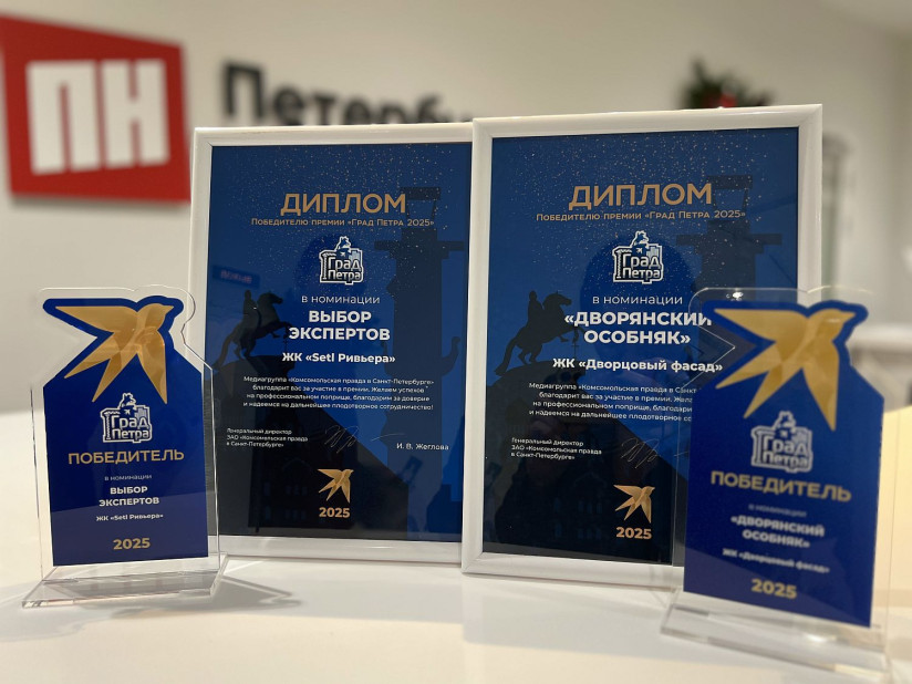 Премию «Град Петра» учредили в 2022 году в честь 350-летия Петра I. По итогам голосования читателей и экспертного жюри, в которое вошли специалисты в области архитектуры, строительства, девелопмента и экологии, жилой комплекс «Setl Ривьера» победил в номинации «Выбор экспертов», а жилой комплекс «Дворцовый фасад» забрал награду «Дворянский особняк».