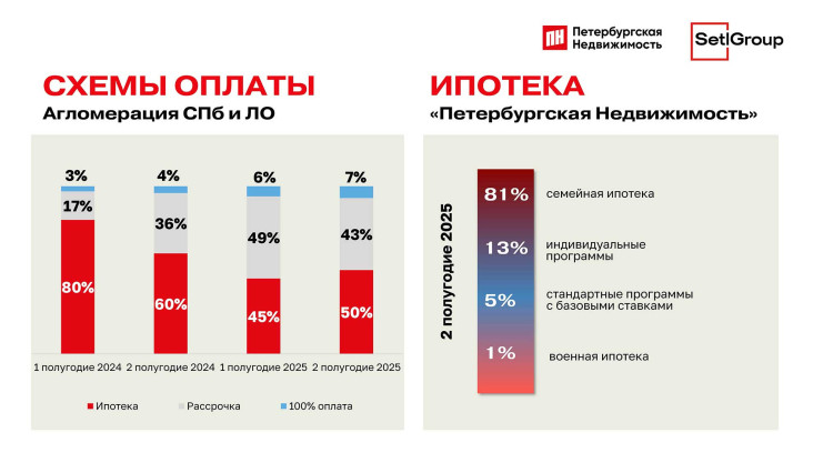 В структуре продаж у нас сейчас примерно равные доли занимают ипотечные сделки и рассрочка.