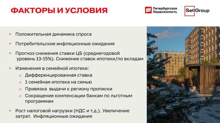 Следующий фактор — предстоящие изменения в программе «Семейной ипотеки». Ну и, наконец, постоянное удорожание недвижимости, неизбежное в силу дефицита предложения, инфляции, повышения НДС и других факторов.