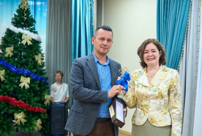 Руководитель проекта холдинга «РСТИ» Евгений Жульмин передал заведующей детским садом № 41 Ольге Героевой символический ключ от здания, пожелав удачи и успехов.