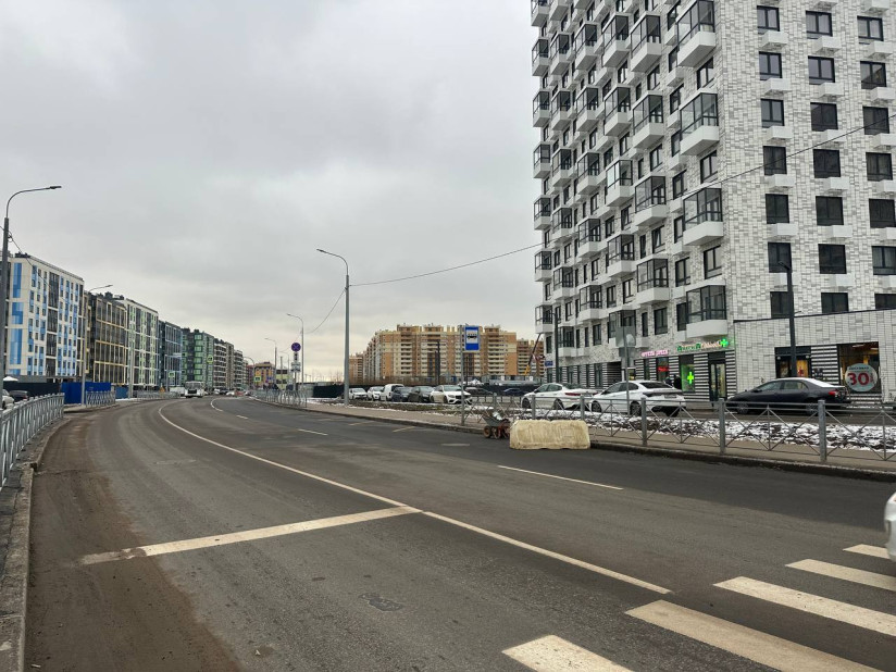 В ходе дорожных работ, как уточнили в ГК «Ленстройтрест», были перенесены подземные инженерные сети, усилено основание дороги, уложен новый асфальт, обустроены широкие тротуары и пешеходные переходы. Вдоль проезжей части установлены новые светофоры, автобусные остановки и дорожные ограждения.