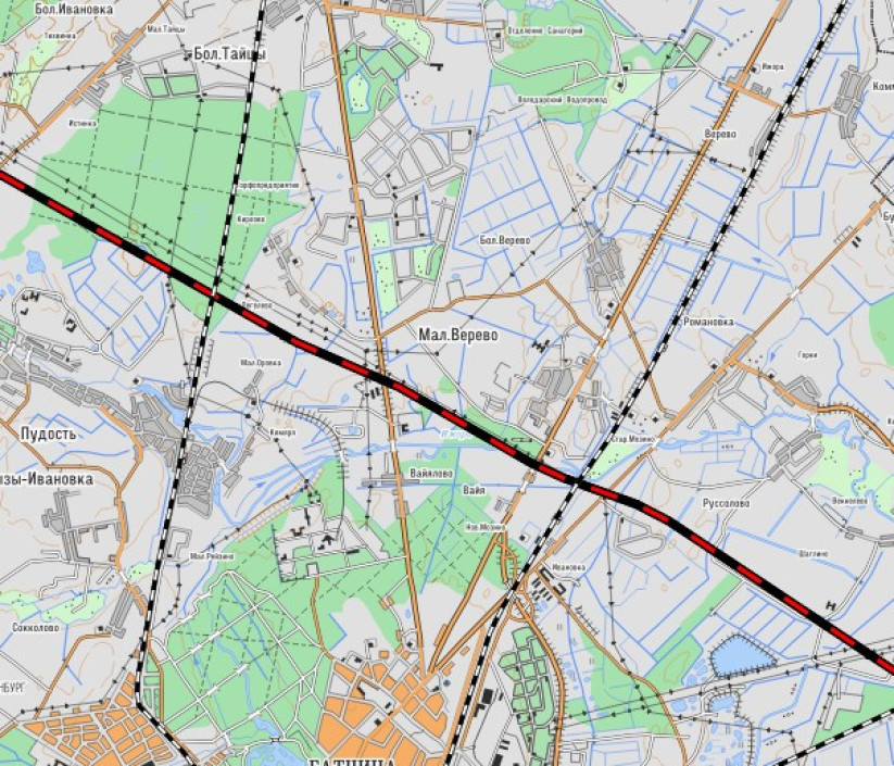 Как посмотреть трассировку Юго-Западного железнодорожного обхода Петербурга: