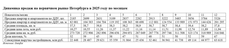 Декабрь стал для петербургских застройщиков самым успешным месяцем 2025 года: если в среднем течение января-ноября они продавали по 3000 квартир и апартаментов в месяц, то в 12-м месяце было зафиксировано 5326 сделок. Это на 77% больше, чем в среднем в месяц в 2025 году, а также на 60% больше, чем в декабре 2024-го, свидетельствуют подсчеты сервиса DataFlat.