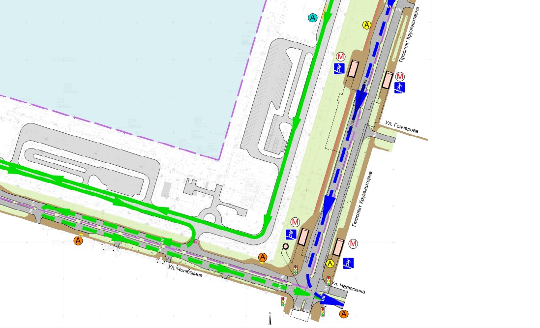 Зато уже известно, как предполагается разместить вестибюли метрополитена на перекрестке проспекта Крузенштерна и улице Челюскина — данные появились в материалах общественных обсуждений одного из проектов на намыве Васильевского острова.