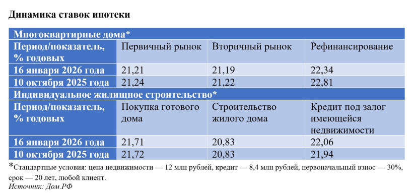 Например, для своих партнеров банки предлагают чуть более выгодные условия, чем для клиентов «с улицы». В обоих случаях с октября 2025 года по январь 2026-го ставка на первичном рынке уменьшилась лишь на 0,03 п.п.: соответственно до 21,88% и 21,9%. На вторичке послабление еще менее заметно — 0,02 п.п.