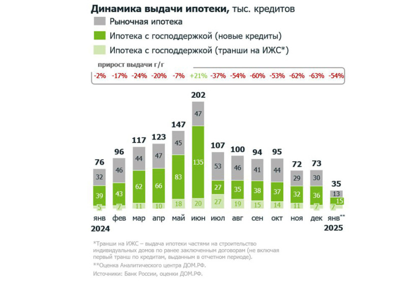 По итогам января 2026 года выдача ипотеки в России оказалась в 2,5 раза больше год к году по числу сделок и в 3,3 раза — в денежном выражении.