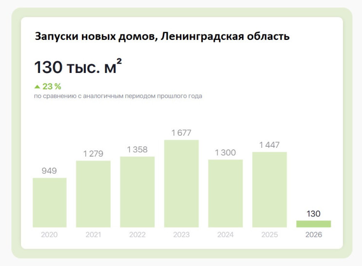 Весь прошлый год Петербург держался в числе лидеров по новым проектам, прибавляя до 48% по объемам запуска год к году. В целом за прошлый год портфель жилой недвижимости Северной столицы, по подсчетам Дом.РФ, пополнился почти на 1,8 млн кв. м (+33% к уровню 2024-го) и более чем на 43,66 тыс. квартир (+42%).