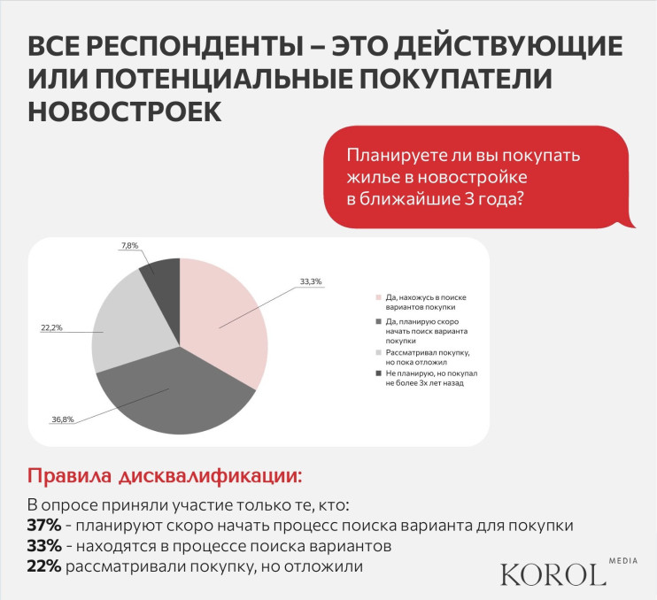 В итоговый обзор вошли данные только по тем участникам, которые являются покупателями новостроек или думают о том, чтобы приобрести жилье.