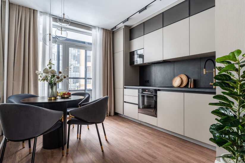 Такое решение делает квартиру универсальной, а пространство остается актуальным даже при смене интерьерных предпочтений владельца.