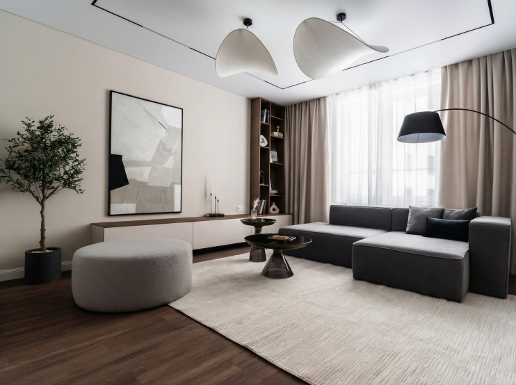 Главная идея стандарта — сочетание качества, практичности и спокойной эстетики. В отделке используются материалы российских и европейских производителей, а дизайн выполнен в нейтральной серо-бежевой гамме, которая легко адаптируется под любой стиль декора.