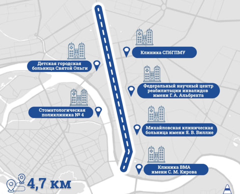 В рамках нацпроекта «Инфраструктура для жизни» в 2026 году в Петербурге приводят в порядок участки улично-дорожной сети, ведущие к больницам и поликлиникам.