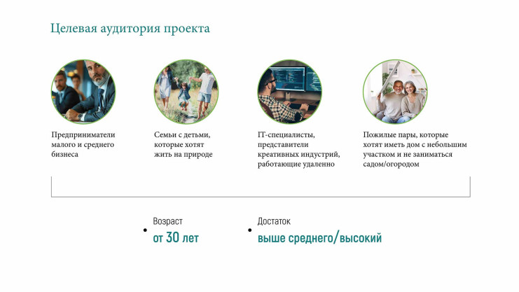 Кстати, целевая аудитория проекта на протяжении лет остается довольно стабильной: представители малого и среднего бизнеса, семьи с детьми, айтишники, пожилые пары, которые хотят жить на природе.