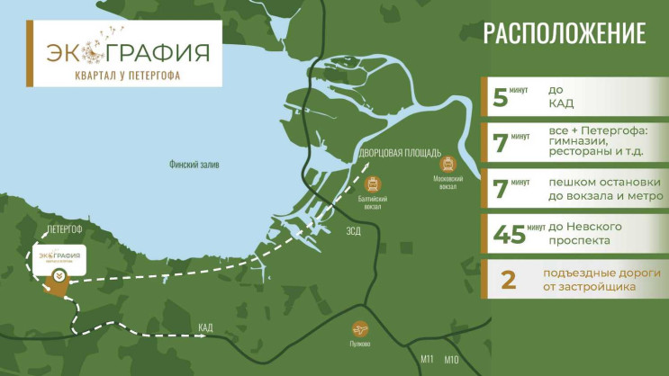 — На самом деле, покупатели очень разные: семьи с детьми, которые хотят гулять рядом с домом по своей зеленой территории; IT-специалисты; инвесторы; клиенты из регионов. Рядом – Гатчина и выезд на Киевское шоссе, до метро «Московская» – 20–25 минут езды. Мы также строим и соцобъекты: детский сад на 210 мест, подъездные дороги.