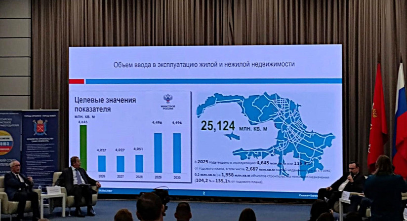 Заместитель председателя комитета по строительству Санкт-Петербурга Валерий Усков сообщил, что город в прошлом году сдал в эксплуатацию 4,645 млн кв. м жилой (2,687 млн) и нежилой недвижимости, превысив план на 15%. Таким образом за прошлый год город построил около 19% от объема, запланированного на 2025-2030 годы.