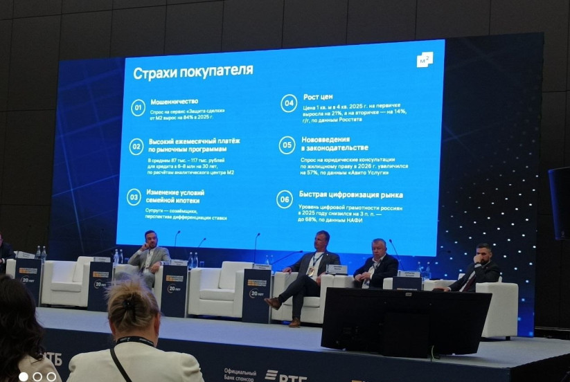 Юлия Рыкунова, сооснователь и директор по развитию бизнеса экосистемы недвижимости «Метр квадратный» («М2») представила анализ вызовов рынка, которые сильно беспокоят покупателя. Среди них: удлинение цикла сделки, мошенничества, рост цен, высокие платежи по ипотеке, нововведения в законодательстве, быстрая цифровизация рынка, рост альтернативных сделок и пр.