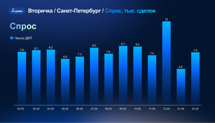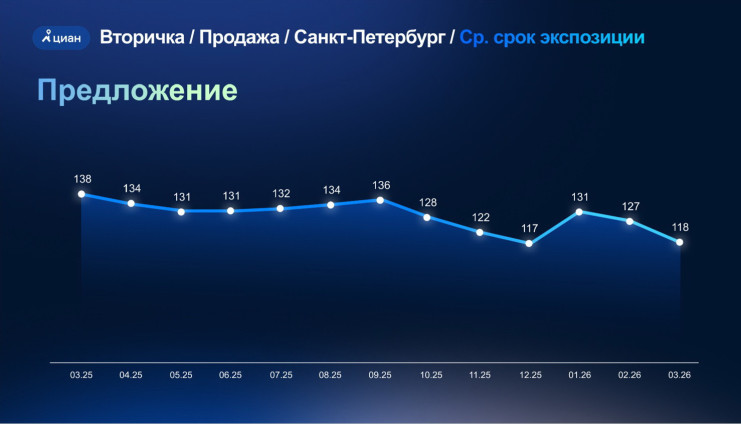 Срок экспозиции снижается, растет спрос, который начался во второй половине 2025 года. По данным Авито, в марте в Петербурге продано на 24% больше вторичного жилья, чем годом ранее, в Ленобласти – на 39%. По итогам первого квартала в городе заключено 14,8 тыс. сделок купли-продажи (+11% год к году) между физлицами. И по этому показателю Северная столица входит в топ-3 регионов, уступая Москве и Московской области.