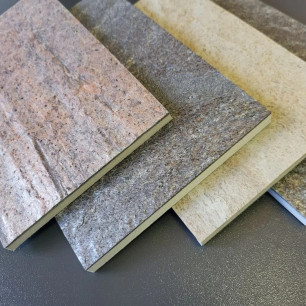 Конечно, наш завод заинтересован в больших объемах производства, но индивидуальные заказы тоже обсуждаются. Для дизайнеров у нас есть материалы, которые мы можем выпускать от нескольких листов. Это натуральный камень, наклеенный на плиту ПВХ. Знаете, сколько весит монолитный каменный слэб (тонко спиленная часть камня) 1,2х2,4 метра и толщиной 2 см? Около 150 кг. А мы можем предложить каменный слэб, наклеенный на плиту ПВХ общим весом порядка 18 кг. Представляете, какая колоссальная экономия на монтаже и скорости установки! Правда, камень мы сами не производим, а покупаем.