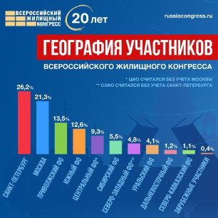 В Санкт-Петербурге прошел Всероссийский жилищный конгресс, который объединил 7477 участников – профессионалов рынка из 217 городов России и ряда дружественных зарубежных государств.