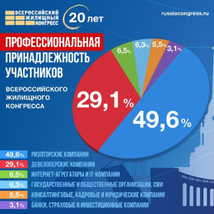 Форум собрал ведущих игроков рынка недвижимости. Порядка 50% участников – представители риэлторских организаций, 30% – девелоперы. В конгрессе также приняли участие руководители органов государственной власти, ведущих крупнейших IT-компаний, банков, страховых, инвестиционных организаций, консалтинговых и юридических компаний.