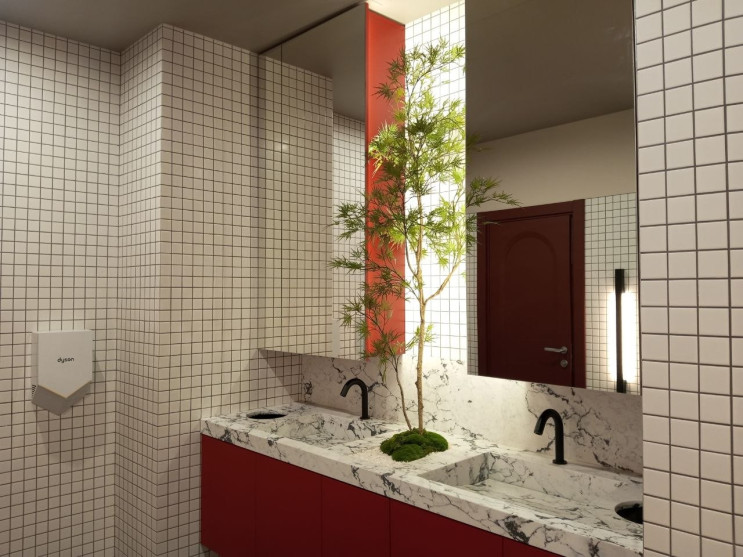 Сейчас на объекте завершаются фасадные работы. Само здание — это бывший ультрамариновый цех, построенный в 1930-х годах. Позднее в нем располагалось училище завода «Пигмент», а в 90-е годы – банк, хранилище которого демонтировали в ходе работ. Историю здания решили сохранить в дизайне внутренних интерьеров в виде отсылок к советскому конструктивизму.