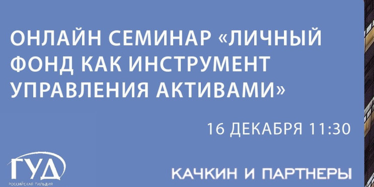 АБ «Качкин и Партнеры» приглашает на онлайн семинар «Личный фонд как инструмент управления активами»