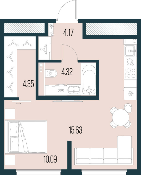 Квартира с 1 спальней