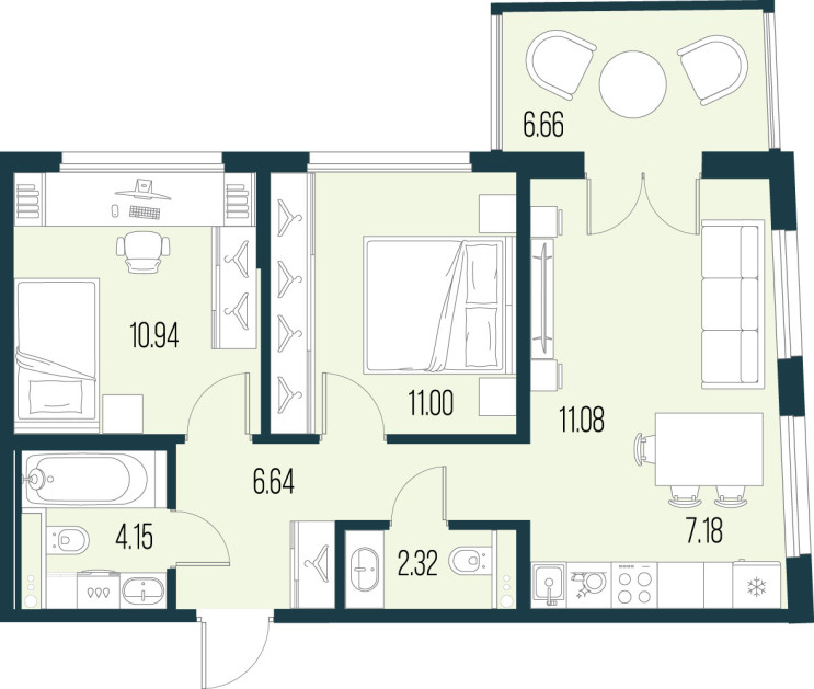 Квартира с 2 спальнями