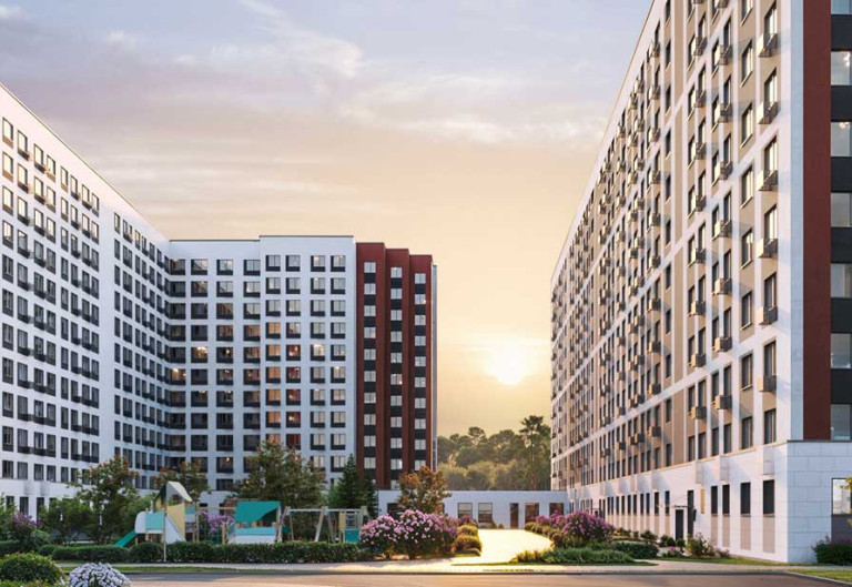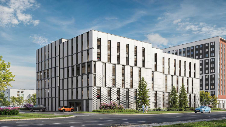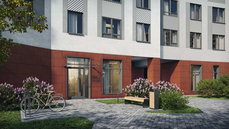 Жилые корпуса решены в С- и П-образной форме — они образуют полузамкнутые дворы, защищенные от ветра и шума. В отделке фасадов будут скомбинированы штукатурные системы и навесные вентилируемые решения, а также использованы спокойные, натуральные оттенки. Авторы проекта продумали архитектурно-художественную подсветку фасадов для создания приятного взору облика квартала в темное время суток.