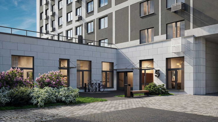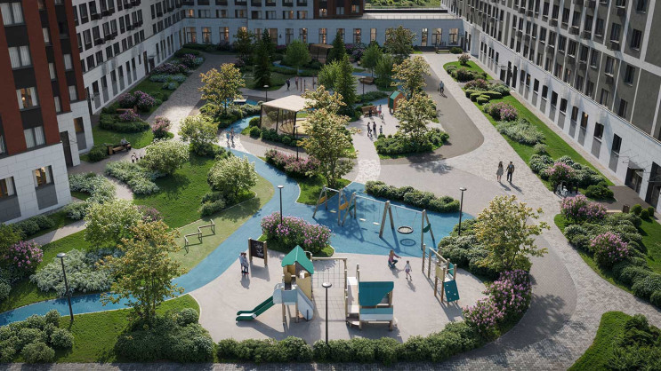 В закрытом от машин внутреннем дворе появятся детские и спортивные площадки, а также зоны для тихого отдыха и пешеходные аллеи. На территории квартала для жильцов благоустроят газоны из многолетних трав, высадят деревья и кустарники, а также установят малые архитектурные формы и оборудуют велопарковки.