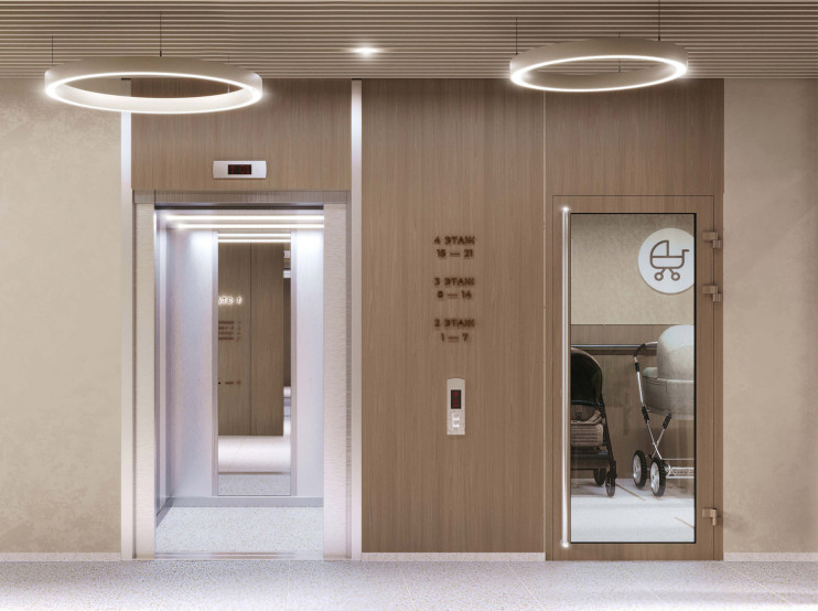 В каждой парадной будут обустроены дизайнерские холлы, выполненные в теплых, светлых оттенках. Для комфорта жителей внутри организуют просторные помещения для хранения колясок, велосипедов и бесшумные лифты.